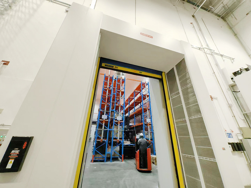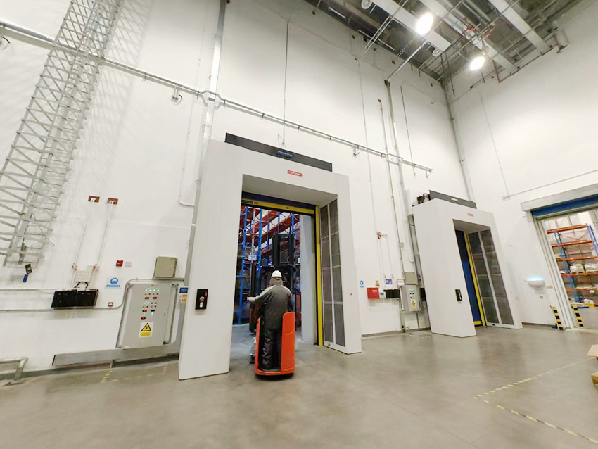 5米高,負(fù)24度低溫冷庫物流出入口,夏季經(jīng)常霧滿為患,地面結(jié)冰,甲方期盼行業(yè)中找到可靠解決方案……